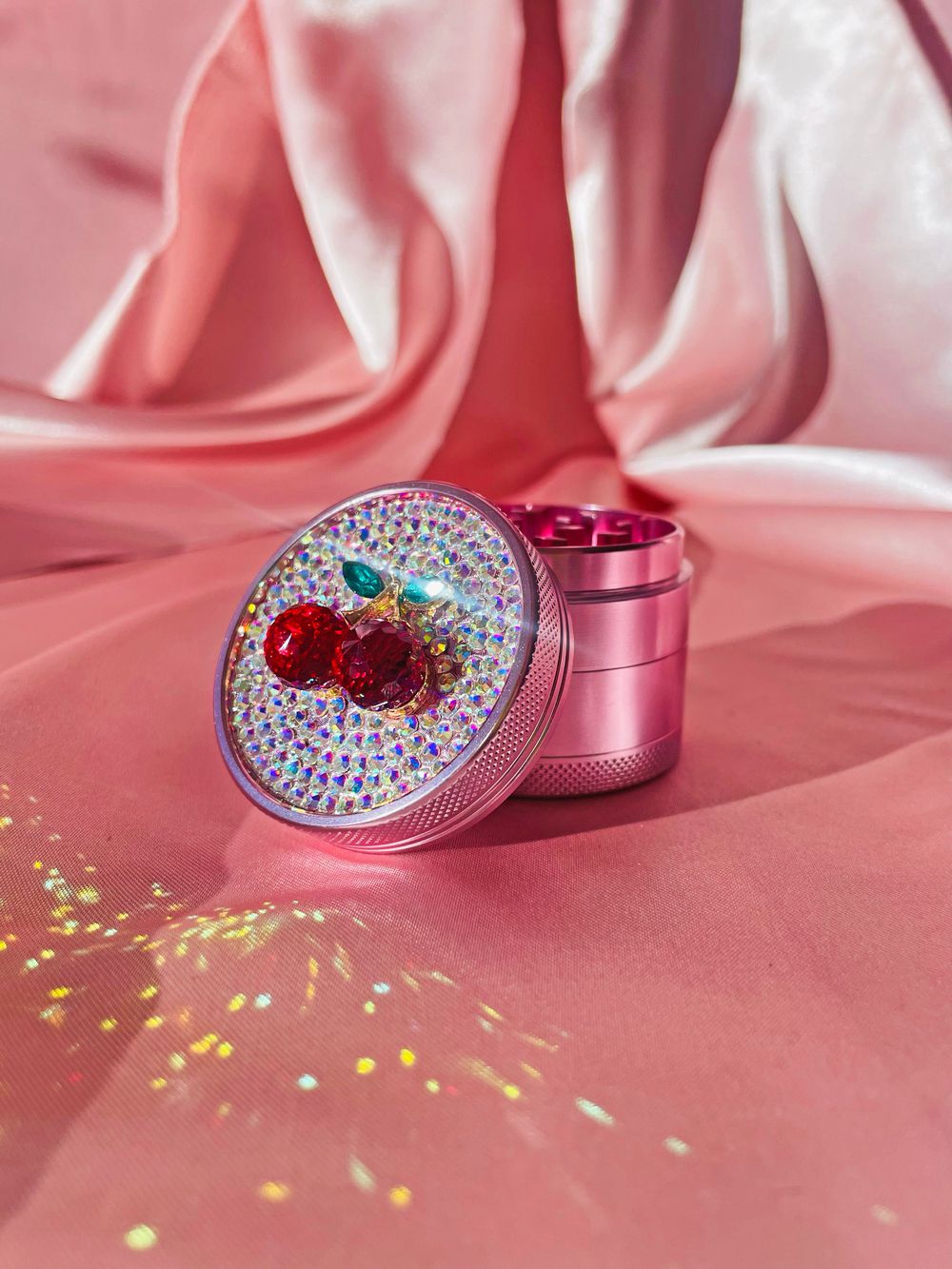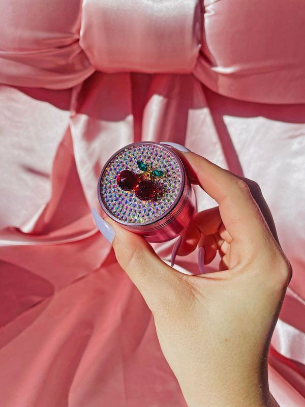 Talk about eye candy. This 4-piece herb grinder is decked out in shimmering rhinestones with a bold red cherry gem on top. The body? A metallic pink finish that makes grinding as pretty as it is practical.